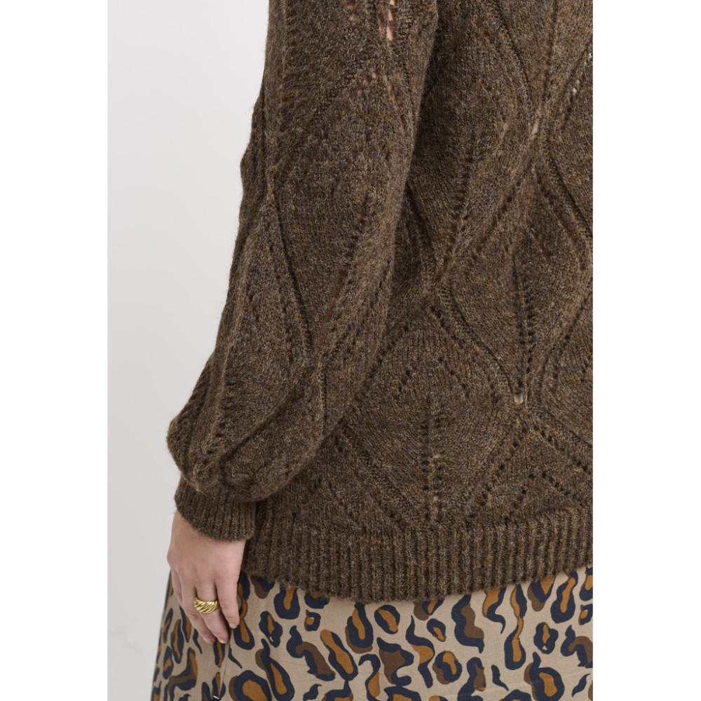 En myk, grov strikket genser med masse tekstur og personlighet. Denne genseren har en avslappet, avslappet passform og et vakkert kabelstrikkmønster som gir et klassisk og koselig preg. Den...