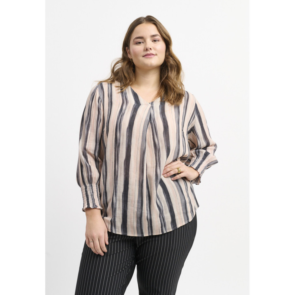 En lett og elegant bluse fra Adia som kombinerer klassiske striper med en avslappet, feminin silhuett. De myke nyansene av rosa, beige og svart skaper et harmonisk fargespill, noe som gjør den egnet...