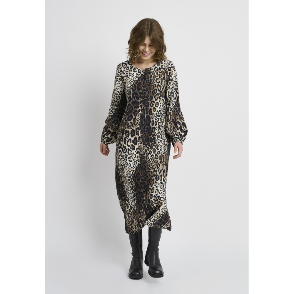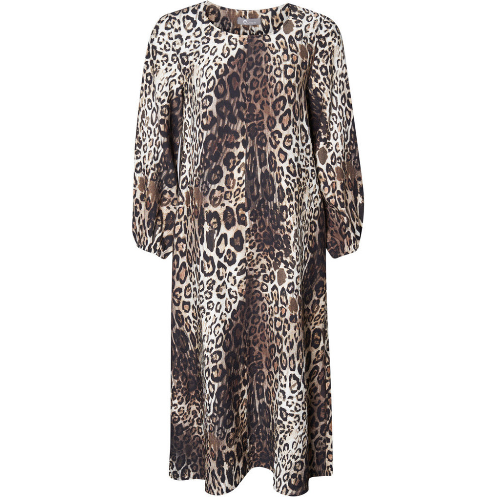 Elton Valalua Leo En avslappet og feminin kjole med rett passform og et dristig leopardtrykk som gir den et stilig preg og personlighet. Den har V-hals, 3/4-lange ermer og en løs silhuett for både komfort og stil. Det...