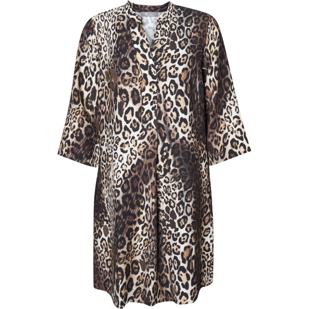 Elton Valalua Leo En avslappet og feminin kjole med rett passform og et dristig leopardtrykk som gir den et stilig preg og personlighet. Den har V-hals, 3/4-lange ermer og en løs silhuett for både komfort og stil. Det...