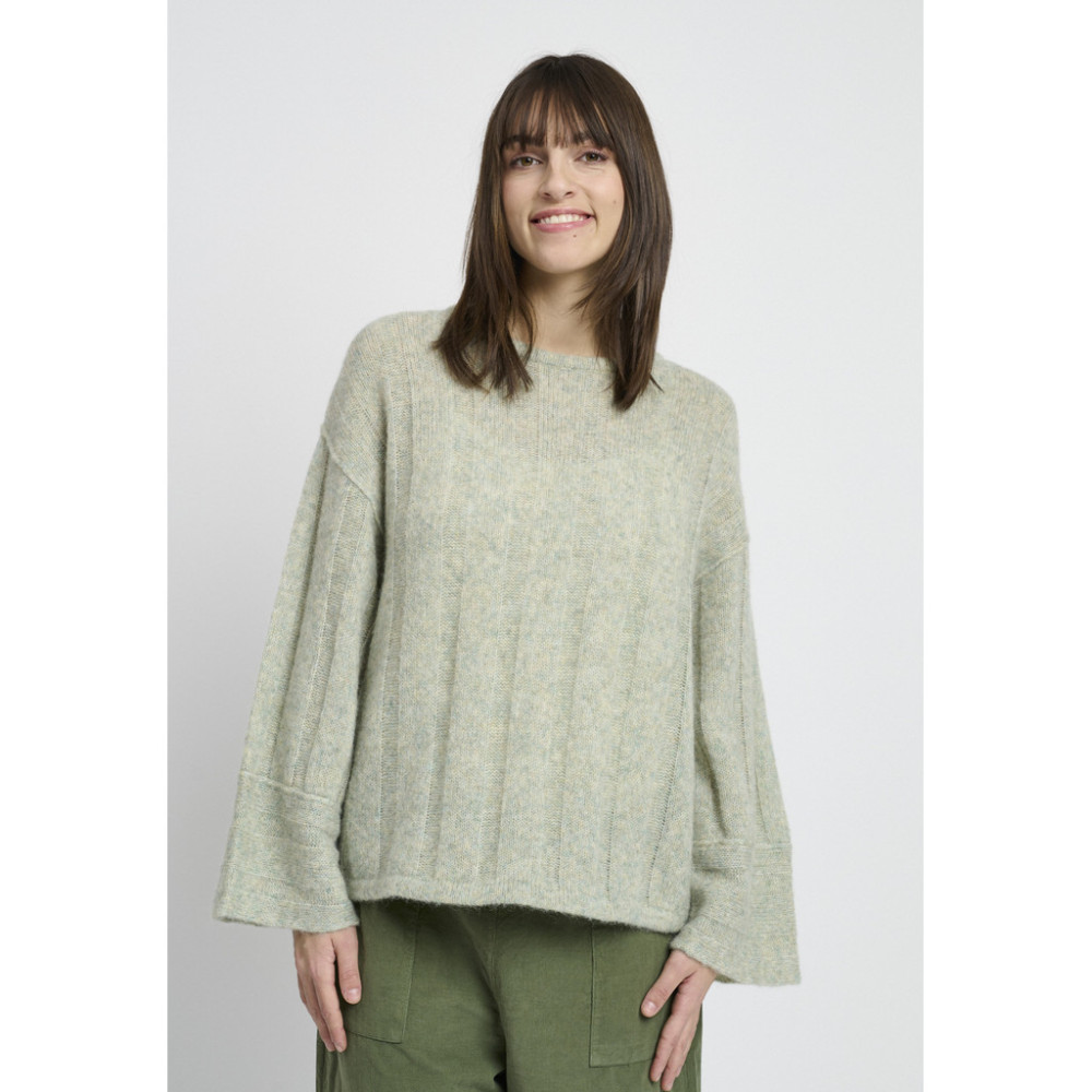 En myk og moderne strikket genser i en luksuriøs blanding av alpakka og ull, som kombinerer komfort og eleganse. Genseren har en rett, avslappet passform med rund hals og brede ribbekanter for en avslappet, moderne følelse. Den litt luftige teksturen gir varme og naturlig eleganse – perfekt for koselige stunder eller et oppfrisket antrekk.