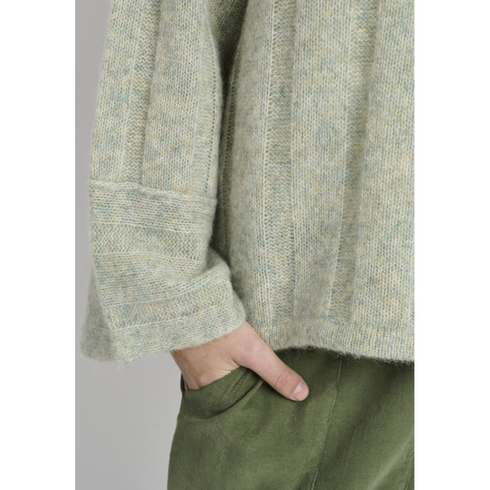 Lind Zoya L.Green Mel En myk og moderne strikket genser i en luksuriøs blanding av alpakka og ull, som kombinerer komfort og eleganse. Genseren har en rett, avslappet passform med rund hals og brede ribbekanter for en...