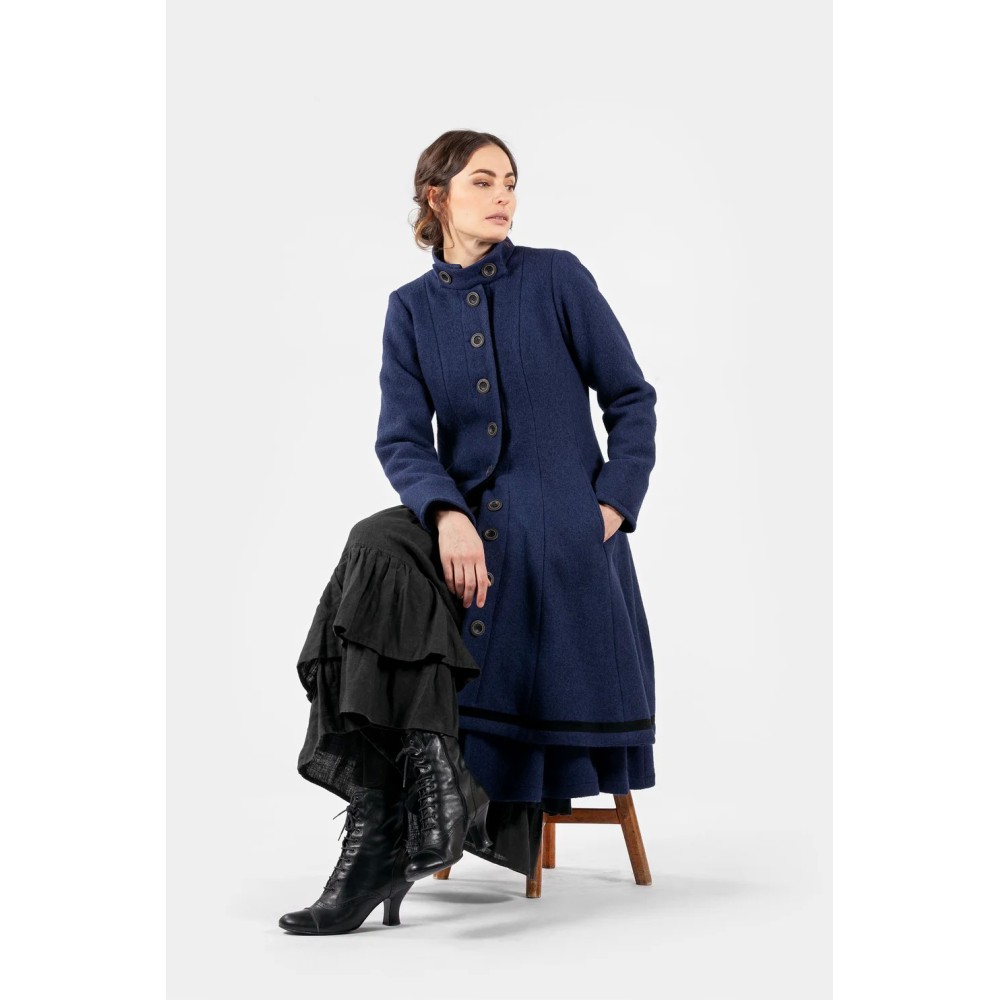 Olars Ulla Rose Wool Fagers som få!Rose er ullkåpen i ull med ekstra frill festet til fôret.Lett svingt midje og magisk skjørt med vidde og det vakreste båndet.Herlig høy hals med knepping og lommer à la to.Helfôret...
