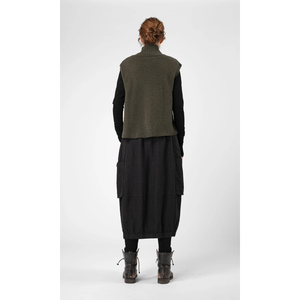 Gå ut i en strikket vest. Nydelig vest med en generøs passform som knytes sammen i sidene med tre dekorative knapper. En smal ribbestrikket mansjett nederst og i ermhullene....