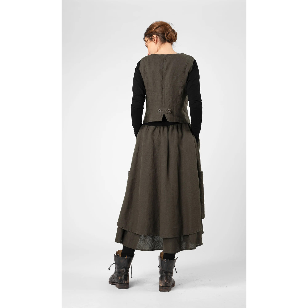 I Vaktel får du en fôret, søt vest i klassisk stil. Tradisjonell knepping foran og to små lommer. Avrundet pent med en utsmykket spenne bak.