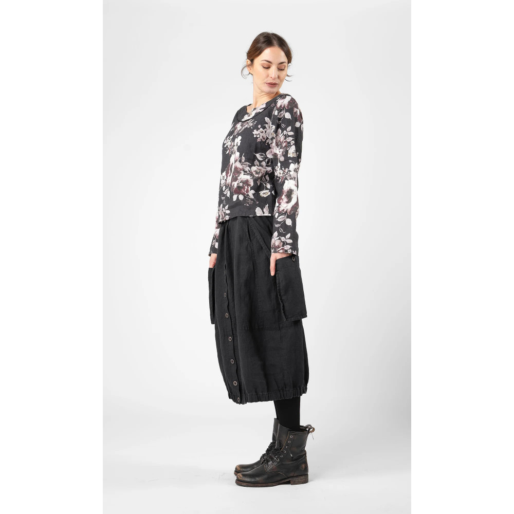 Olars Ulla Nojje Svart Blomma OneSize Linskjørt med stilig vidde og to lag med lykke. Lett plissert med et underskjørt som går rett under kneet. Komfortabel strikk i midjen og to lommer. Dekorert med smale stropper i...