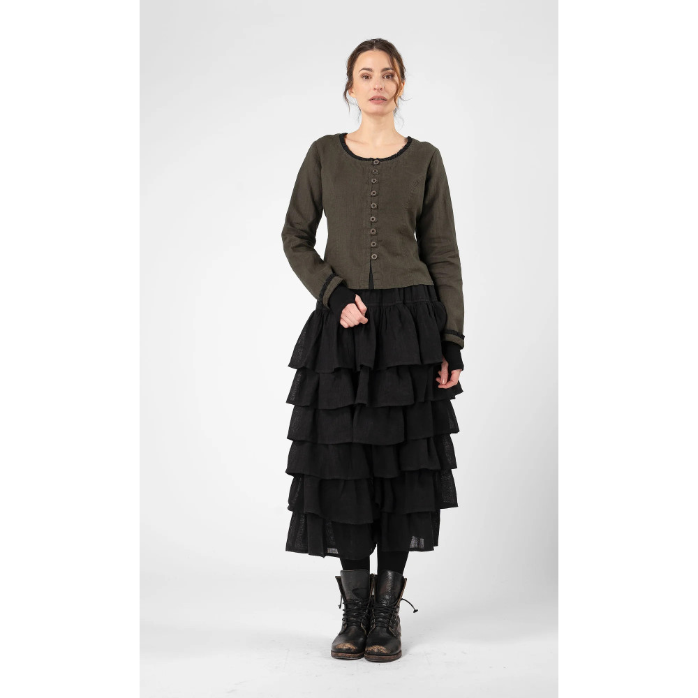 Søte Juvas!En helt bedårende linbluse i figurnært snitt.Trekvart lange ermer og rund hals med knepping foran.Kiler i halsen og på ermene som gir det lille ekstra.Velbalansert design som gir et...