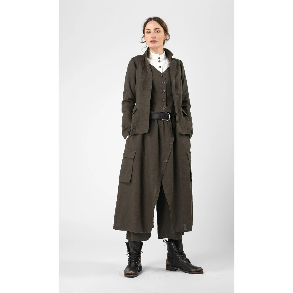 Linråvaren er dyrket, spunnet til garn, vevd og farget i Europa, og plaggene er da også sydd i Europa.