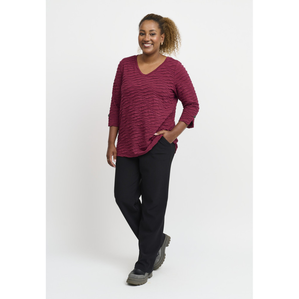 Pont Neuf Kenya Bordeaux En enkel og komfortabel bluse med et strikket teksturmønster i en vakker bærfarge. Den rette passformen og den myke kvaliteten gir et avslappet, men flatterende utseende som er lett å style....